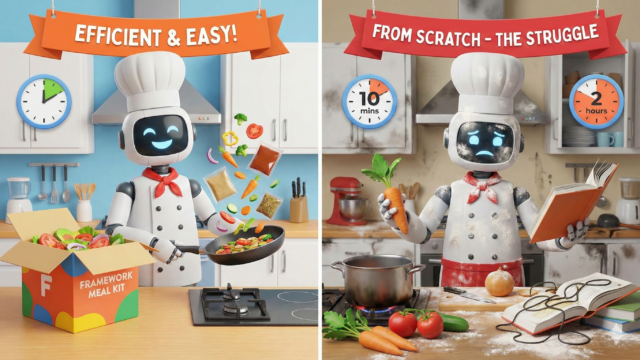 【ざっくり言うと】フレームワークとは、アプリ開発に必要な機能が最初からセットになった「半完成キット」や「ひな形」のことやで。「枠組み(Framework)」っていう意味そのまま。これを使うと、面倒な下準備を飛ばして、いきなりメインの開発に入...