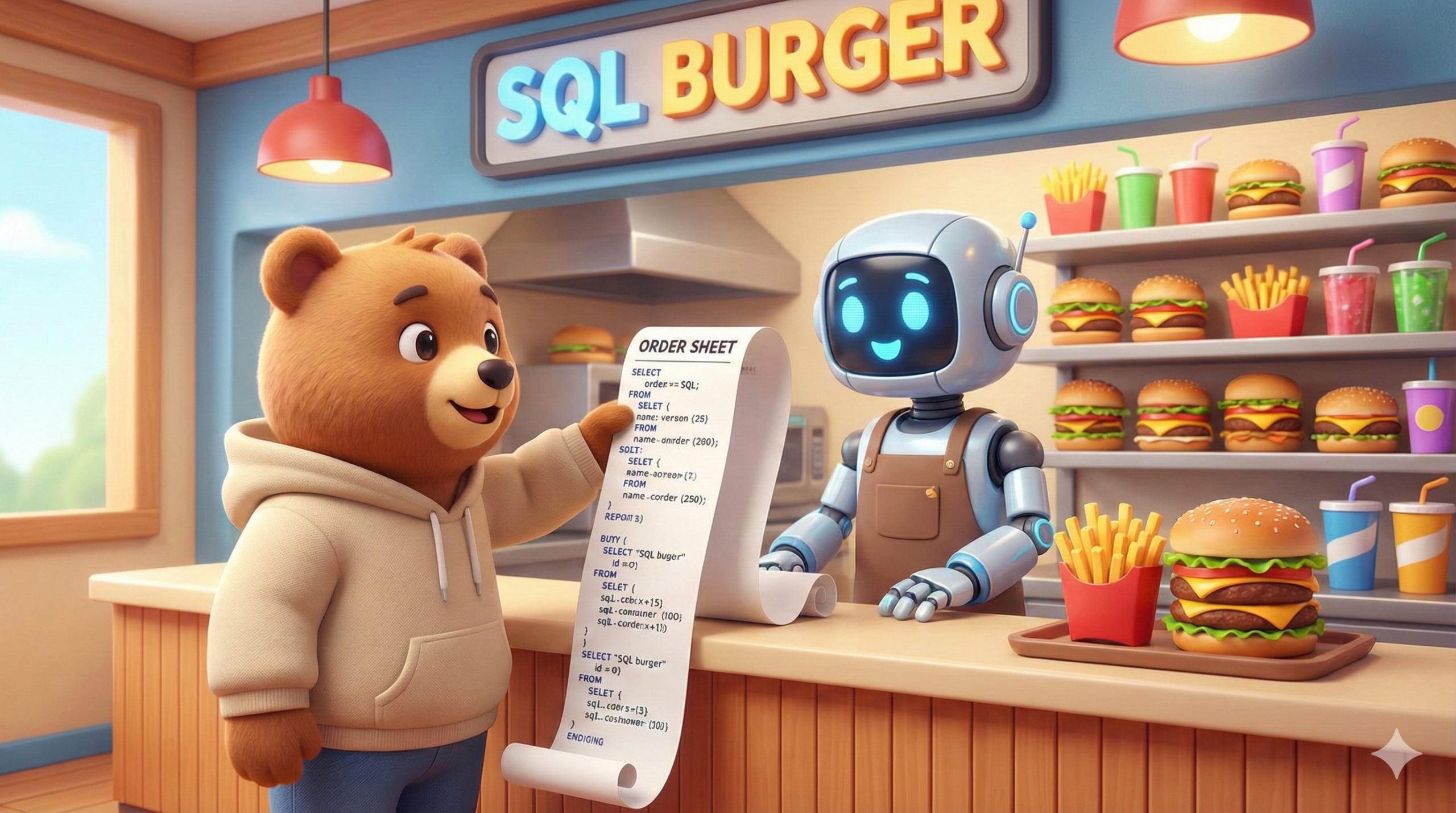 SQLは、「注文にめっちゃ厳しいハンバーガー屋でのオーダー」だと思ってください。